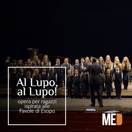 Il Coro di Voci Bianche – preparato da Salvatore Murru che dirige anche il Sonora Chamber Ensemble – canta, mima e ‘sonorizza’ le brevi favole esopiche. I bambini, cantando e recitando, interpretano e commentano le favole, ne traggono la morale. A loro sono affidate ben 14 canzoni: l’ultima “Al lupo, al lupo! “- trasformazione in versi della favola del pastorello bugiardo – dà il titolo all’opera.
