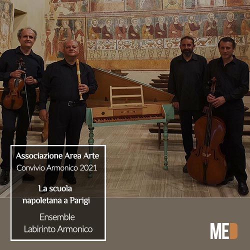 L’ Ensemble Labirinto Armonico sarà ospite del prossimo appuntamento di Convivio Armonico dell’ Associazione Area Arte. Con strumenti d’epoca l’ ensemble formato da Pierluigi Mencattini, Gaetano Di Ilio, Sergio Basilico e  Walter D’ Arcangelo, presenta il concerto “La Scuola Napoletana a Parigi”.