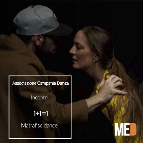 “Incontri” la rassegna di danza contemporanea realizzata dall’ Associazione Campania Danza, prosegue con Matrafisc Dance in “1+1=1”(filosofia dell’identità)” di Ina Colizza e Antonello Apicella: in filosofia, l’identità è la relazione che ogni cosa ha solo con se stessa; l’idea di identità appartiene a quei sistemi filosofici che partendo dalla distinzione tra due realtà eterogenee le considerano poi identiche in relazione a una realtà superiore a cui appartengono le prime due.