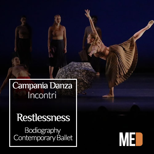 La rassegna Incontri dell’ Associazione Campania Danza riprende con il Bodiography Contemporary Ballet in Restlessness un lavoro di Maria Caruso, Antonello Apicella e Ina Colizza.